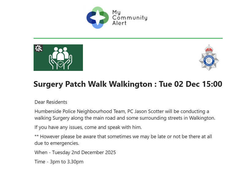 Surgery Patch Walk with PC Scotter, Tuesday 2 December 2025 at 3.00pm Added on 06 October 2025 < Ukulele Festival 2025Jocks Lodge Updates - A1079 Road Closures >